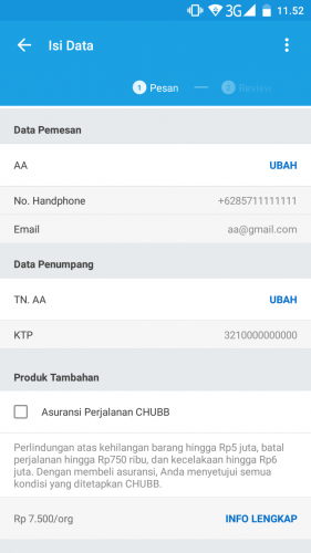 Pada halaman ini, anda akan di suruh mereview atau mengoreksi pemesanan anda. Ada yang salah atau tidak. Jika tidak ada kekeliruan, lanjutkan ke “Pilih Metode Pembayaran”. (lihat gambar)