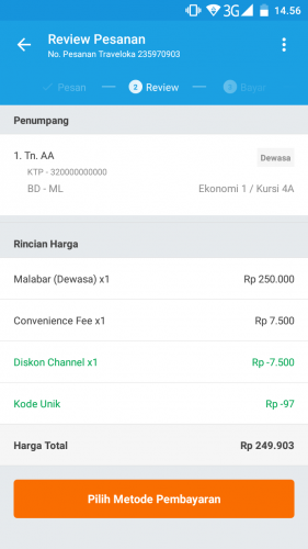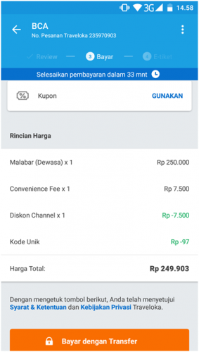 Contoh : Misalnya jumlah biaya di aplikasi traveloka adalah Rp. 249.903